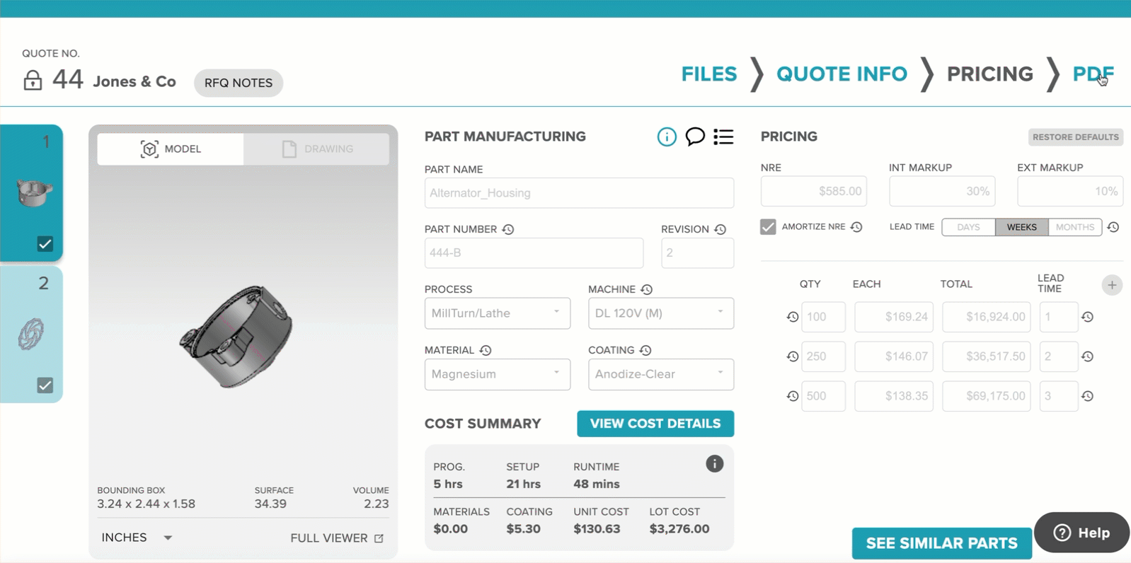 From CAD viewing and AI-powered estimating to RFQ automation, team collaboration, and professional quotes — every step of your quoting process works together in one secure system built for machine shops.