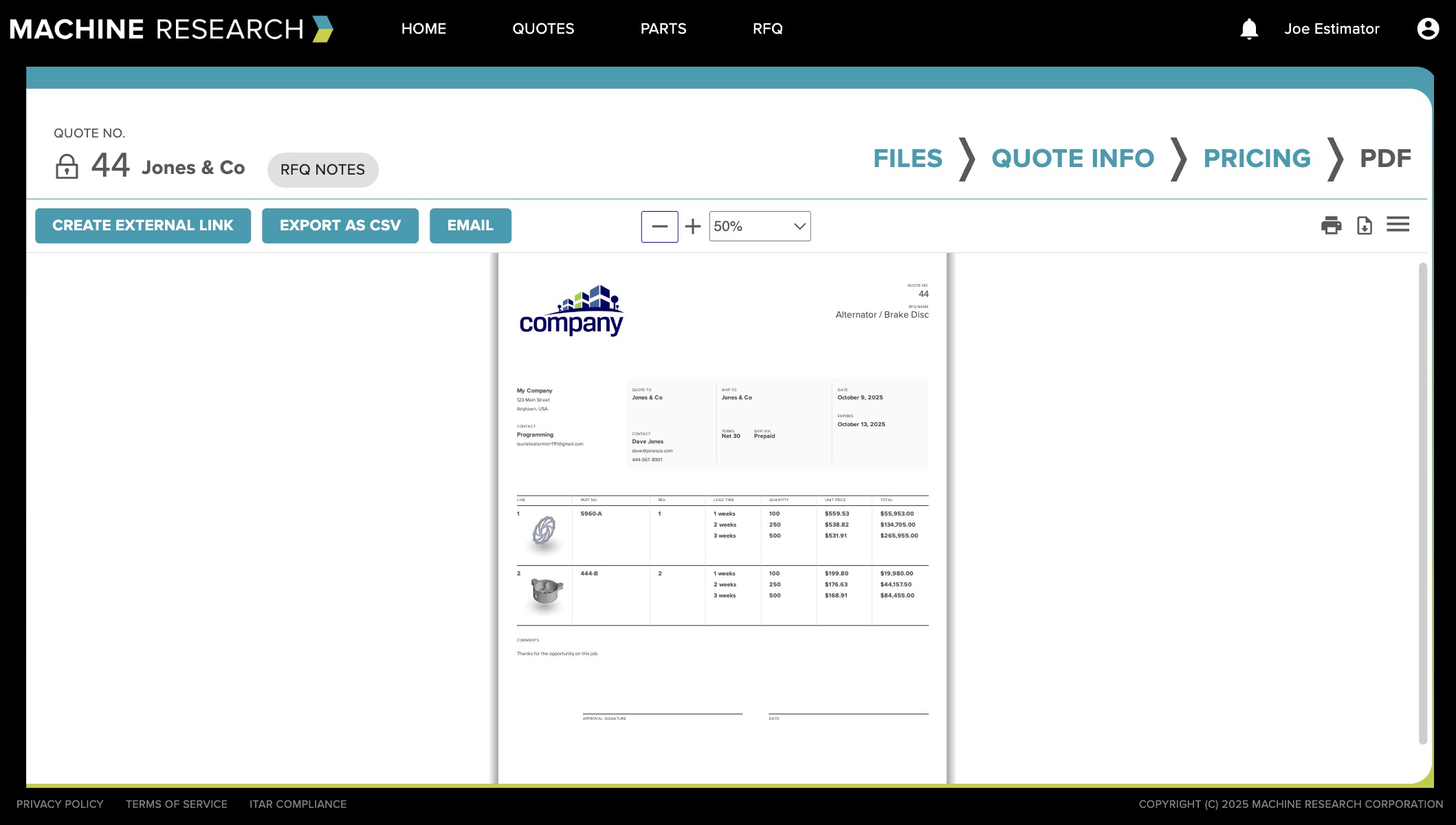 "Machine Research has been an invaluable, ITAR-compliant tool—helping us quote faster, stay organized and win more work.”