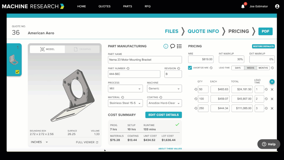 No. Machine Research is not a standalone CAD viewer download tool. It is part of a professional estimating and quoting platform built specifically for machine shops.
